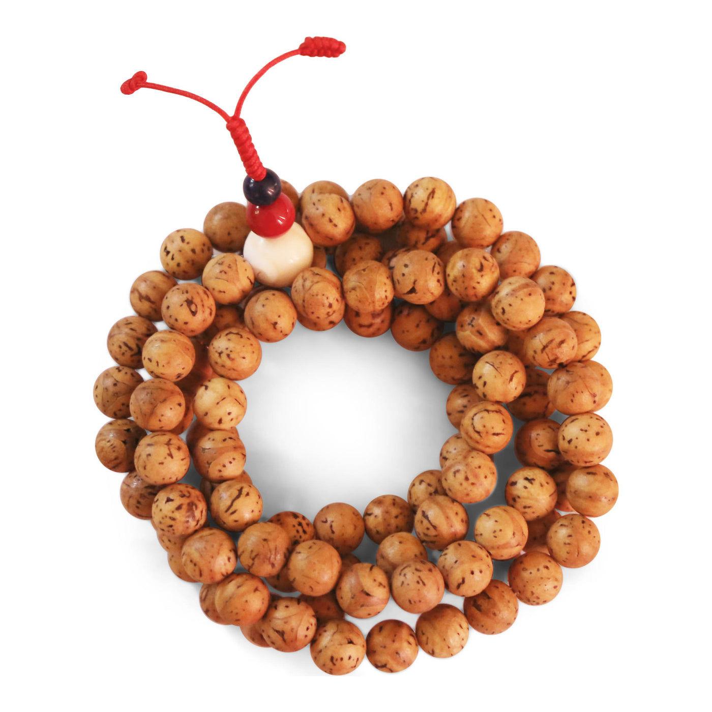 The bodhi seed beads on this mala came from India, where Lord Buddha Shakyamuni attained enlightenment.