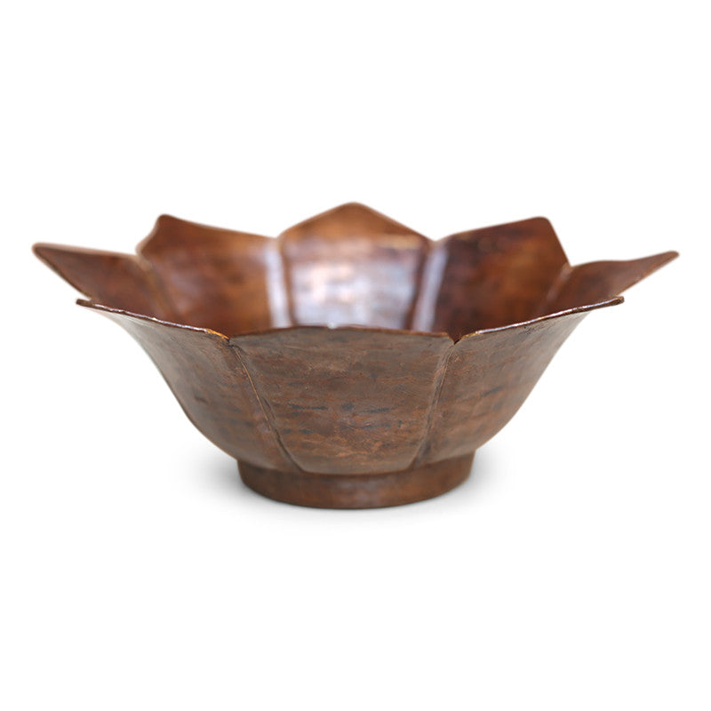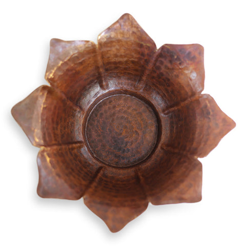 This bowl is hand-hammered by producers in Palpa, Nepal using basic tools. Shaped like a lotus, it represents the purity of our offerings. The number of petals - eight - also have special significance in Buddhism, such as the Eight-fold Noble Path, eight auspicious symbols, eight auspicious substances and so forth.