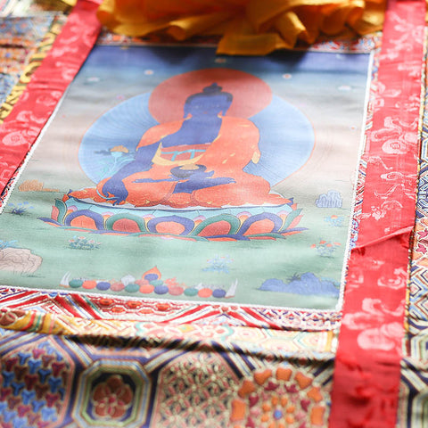 Medicine Buddha Thangka - With brocade