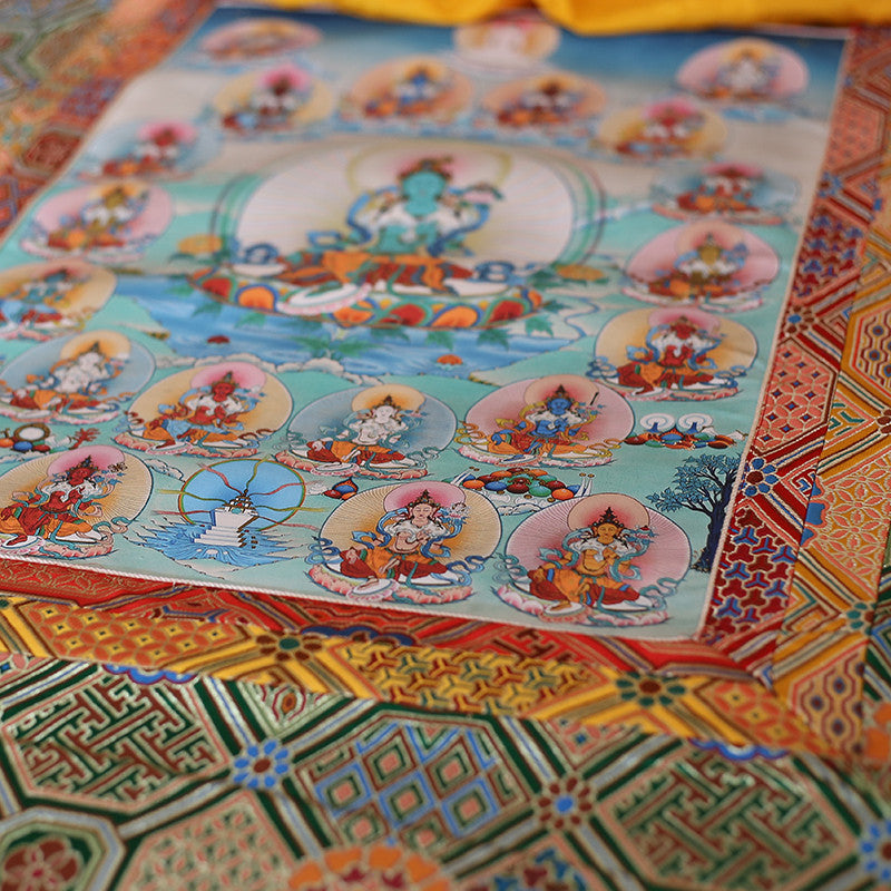 Thangkas – paintings of deities - are traditionally painted on canvas and used as the main support to meditation practice. Reproduced on long-lasting canvas, these thangkas are of such high quality that at first glance they appear painted. You can choose to have your printed thangkas framed in brocade in the traditional Tibetan style or without brocade, allowing you to choose how it will be displayed.