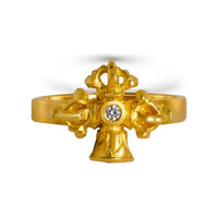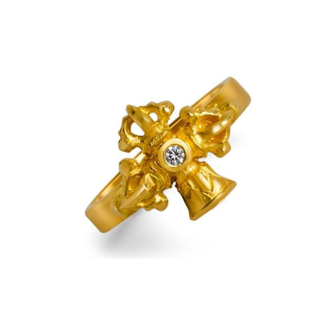 The unison ring here represents the inseparability of wisdom and compassion bound together at the center with the most precious of stones symbolizing strength, clarity and indestructibility.