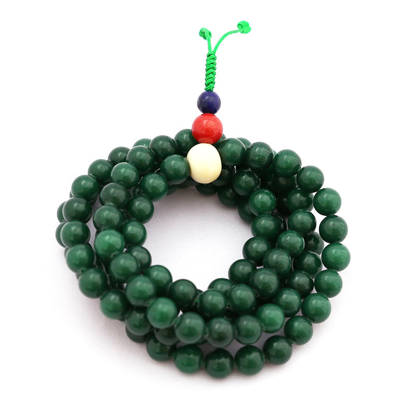 Jade is a powerful emotional balancer, nurturing and bringing peace and purity into your life, removing negative thoughts and energy. Practitioners often choose a Jade Mala to enhance their practice of Green Tara.