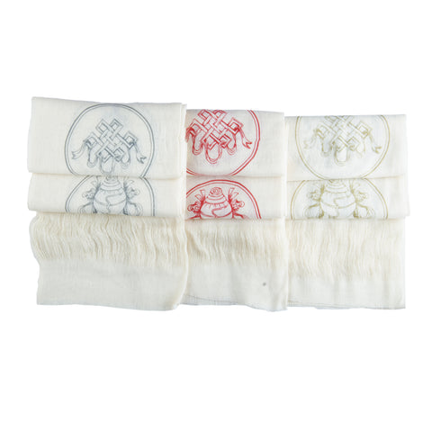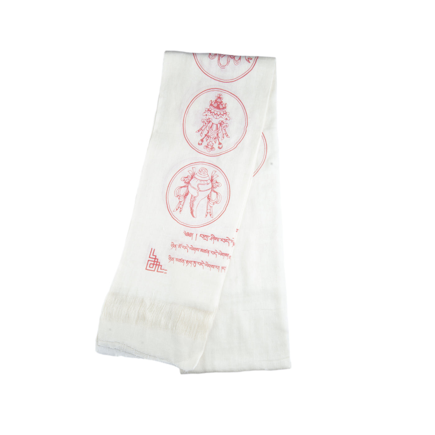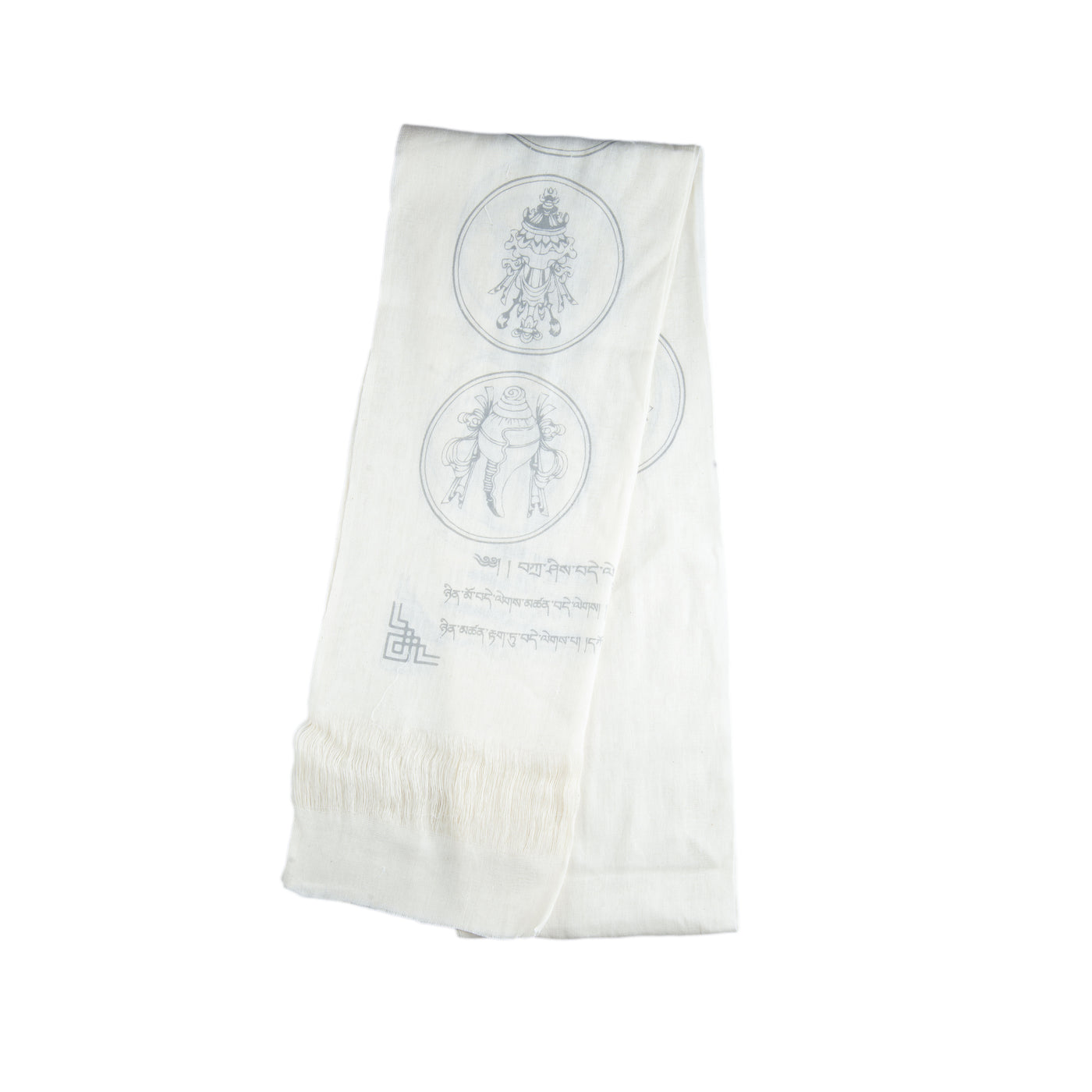 However, the environmental impact of khata is emerging as a serious problem as many are made of synthetic, non degradable materials. As an alternative solution, our BIODEGRADABLE KHATA, is made from eco-friendly, biodegradable bamboo and cotton blend. This KHATA helps to lessen our environmental footprint as we offer them to others. The BIODEGRADABLE KHATA has eight auspicious symbols printed on it.