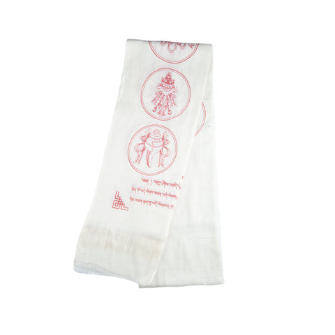 Khata is a traditional ceremonial scarf in Tibetian culture. The khata symbolizes purity and compassion and is worn or presented with incense at ceremonial occasions, including births, weddings, funerals, graduations and the arrival or departure of guests. When given to arriving guests, it symbolizes welcome. When given as a farewell gesture, it symbolizes a safe journey. It is an honor for a person to be presented with khata as it is a genuine act of blessing and good will.
